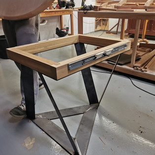 Mais do que na extensão, foi o pé que se revelou o grande desafio! Para garantir a total estabilidade da peça foram preciso alguns testes, várias viagens ida e volta entre oficinas de marcenaria e serralharia e um grande trabalho de equipa! O cliente fez parte do processo e foi contribuindo com alterações e feedbacks preciosos ao resultado final. E só nos faz sentido trabalhar assim: de portas abertas e telefone sempre disponível!